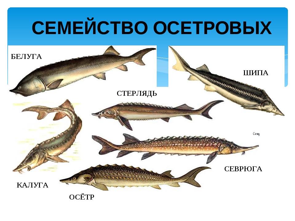 Рыбы осетровые, названия которых представлены ниже, включают в свой список: