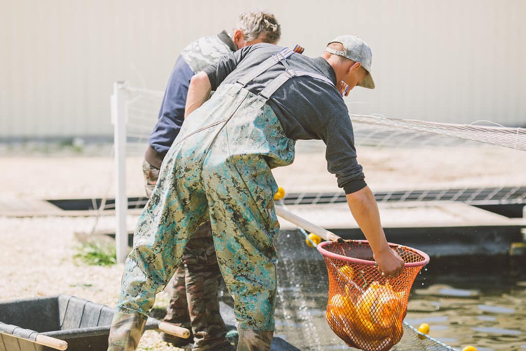 Вся рыба до забоя проходит длительную двухмесячную очистку на проточной воде для устранения посторонних запахов и улучшения качества икры.